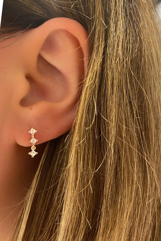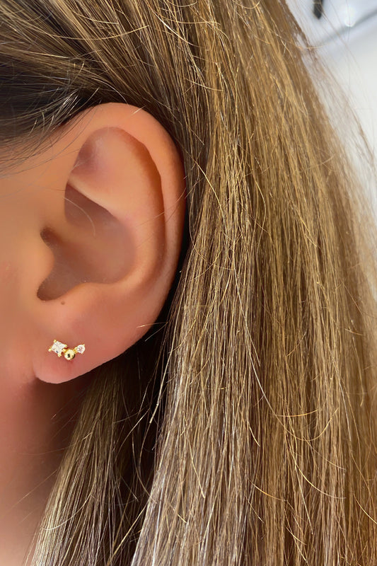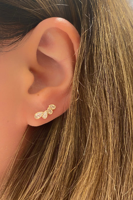 Dört Top Tırnaklı Üç Taş Gümüş Çivili Küpe