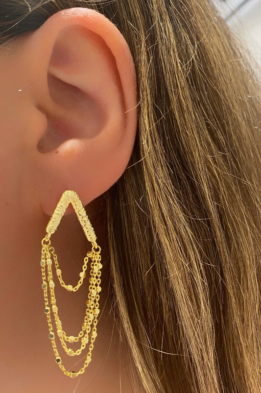 Üç Sıra Dövme Zincir Klips Gümüş Küpe