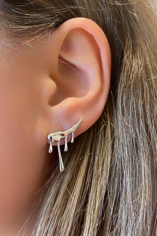 Midi Taşsız Akışkan Gümüş Çivili Küpe
