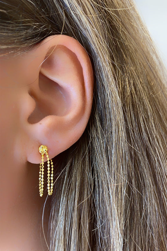 Mini Üç Top Detay Top Zincir Klips Gümüş Küpe