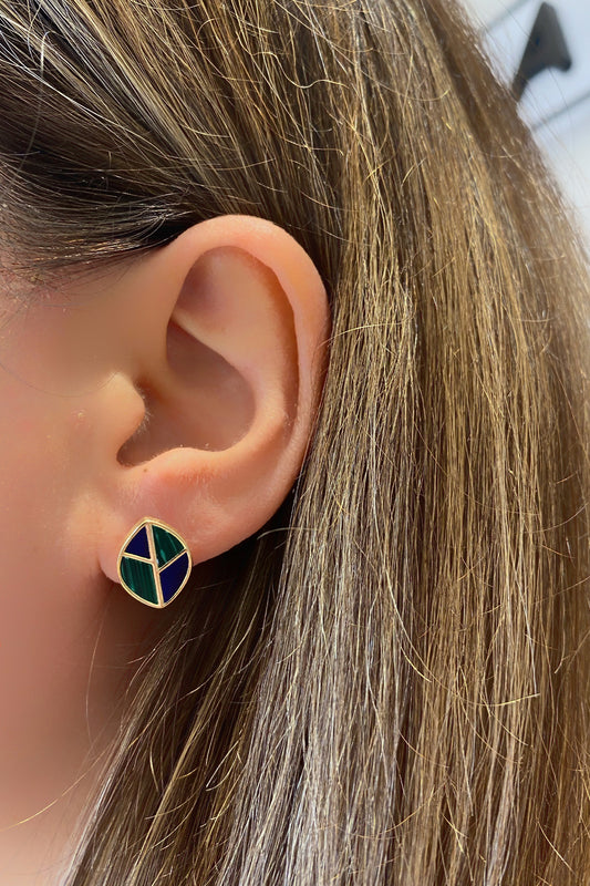 Lapis Ve Malahit Yaprak Gümüş Çivili Küpe