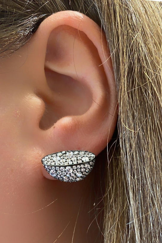 Elmas Montür Yarım Ay Gümüş Çivili Küpe