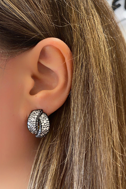 Elmas Montür Dalga Gümüş Çivili Küpe