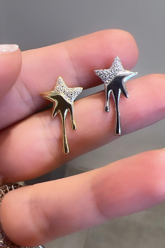 Taş Detaylı Akışkan Yıldız Gümüş Çivili Küpe