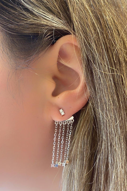Mix Renkli Beş Saçaklı Gümüş Çivili Küpe