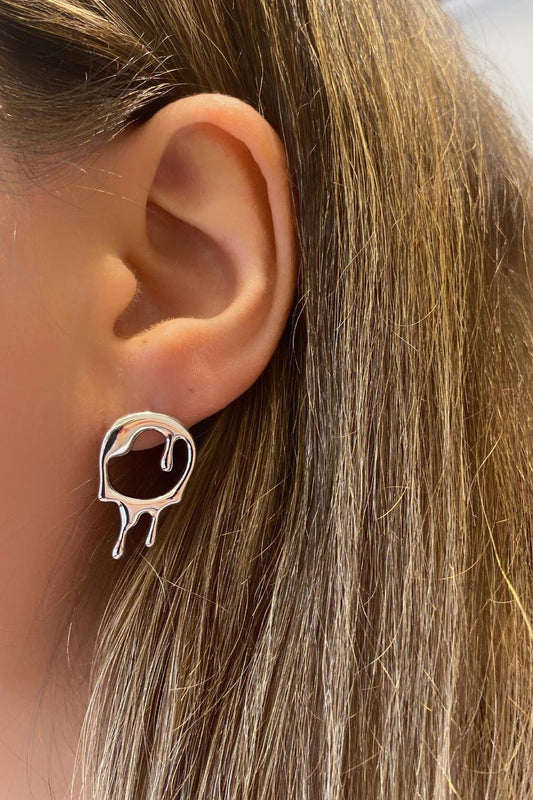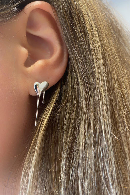 Taşsız Kalp Akışkan Gümüş Çivili Küpe