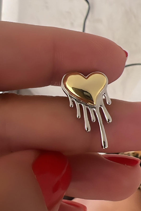 Mix Renkli Akışkan Kalp Gümüş Çivili Küpe