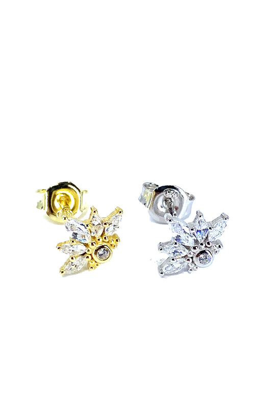 Minimal Taşlı Taç Gümüş Çivili Küpe