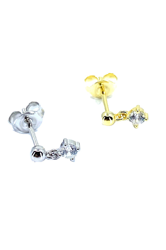 Top Ve Tektaş Sallantılı Gümüş Çivili Küpe