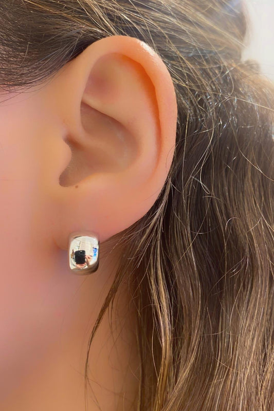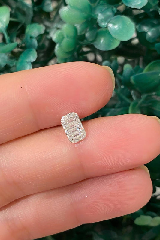 Mini Baget Dikdörtgen Gümüş Çivili Küpe