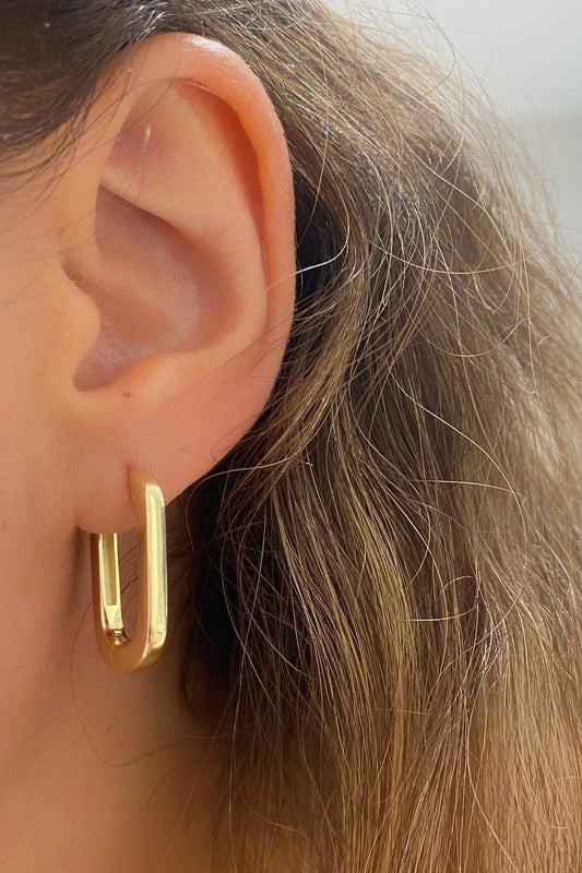 Taşsız Köşeli Dikdörtgen Gümüş Halka Küpe