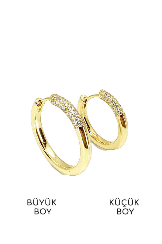 Çeyrek Sıra Taşlı Dolu Boru Gümüş Halka Küpe 15 Mm