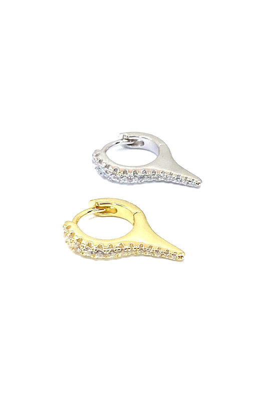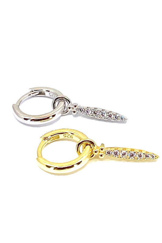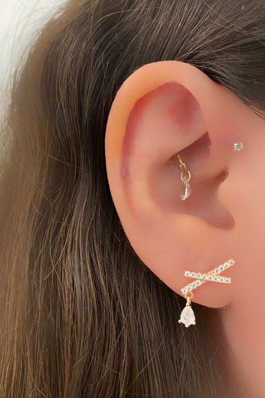 Damla Sallantılı Taşlı X Gümüş Çivili Küpe