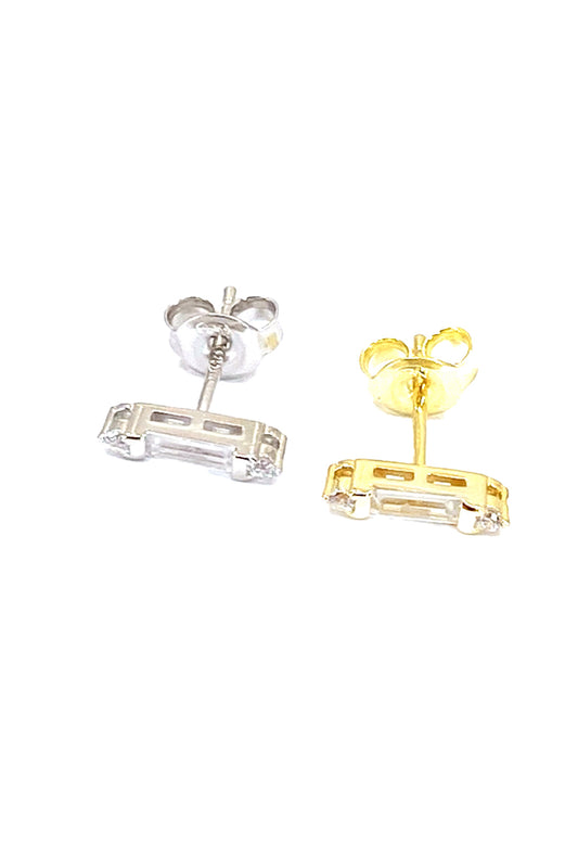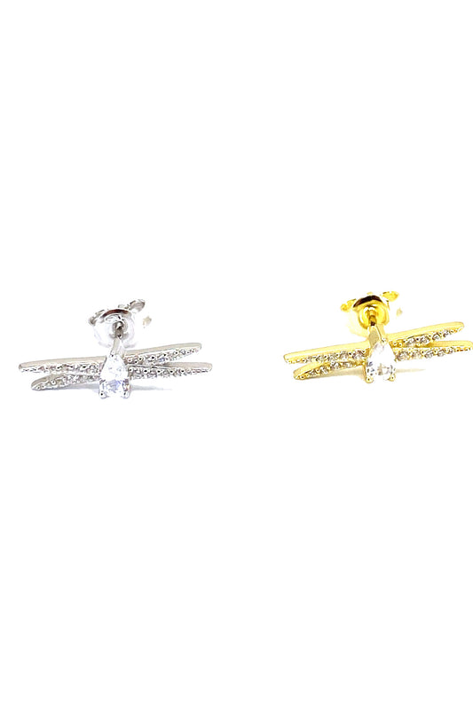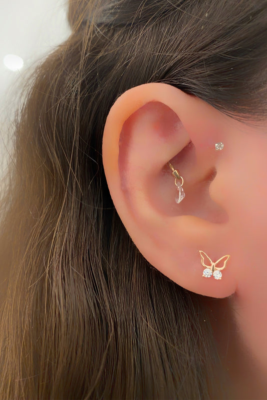 Mini İki Tektaş Kelebek Gümüş Çivili Küpe