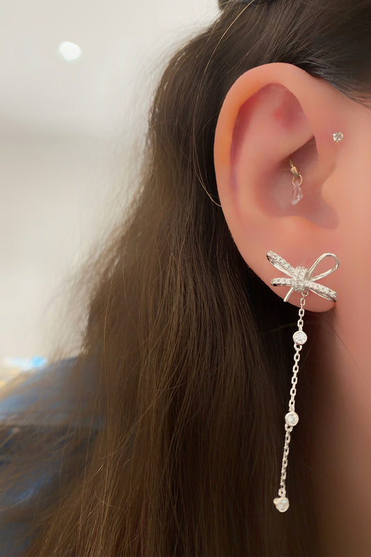 Taşlı Kurdele Boğum Gümüş Çivili Küpe