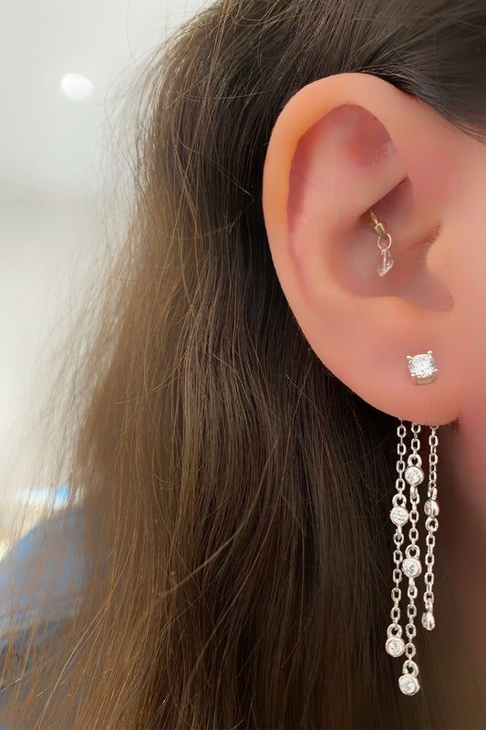 Tektaş Üç Sıra Saçaklı Tohum Gümüş Çivili Küpe