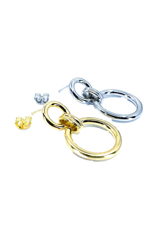 Taşsız İki Çember Geçmeli Gümüş Çivili Küpe