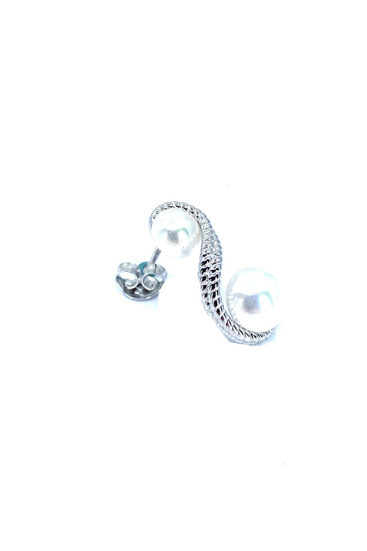 İki İnci Burgu Detay S Gümüş Çivili Küpe