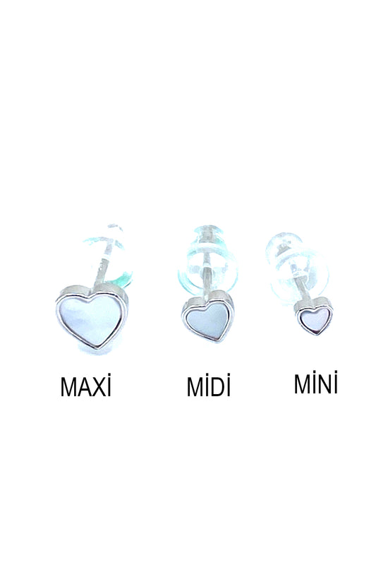 Midi Sedef Kalp Gümüş Çivili Küpe