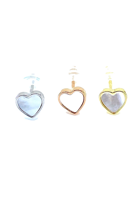 Mini Sedef Kalp Gümüş Çivili Küpe