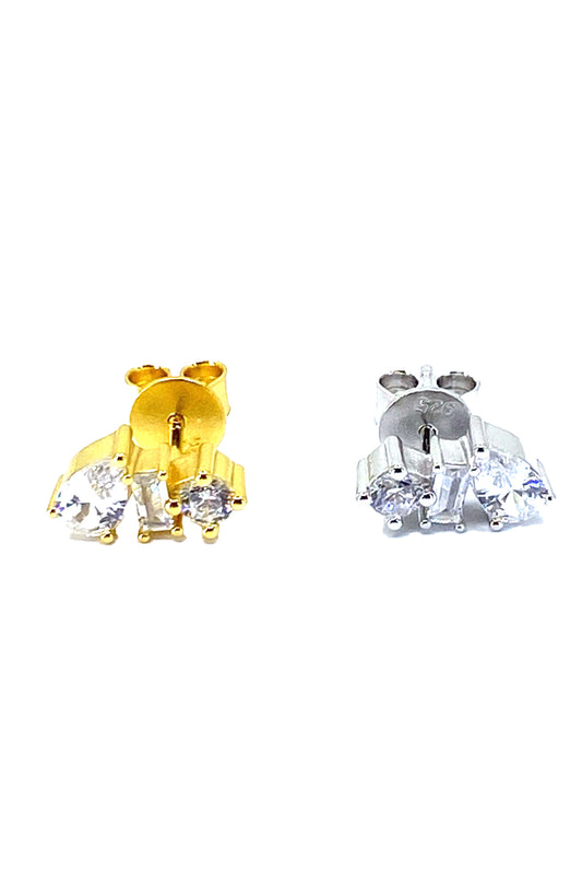 Beyaz İki Taş İki Baget Çubuk Gümüş Küpe