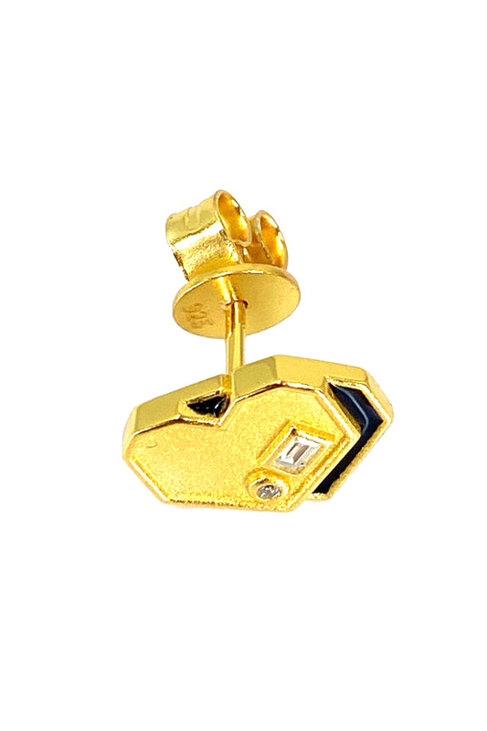 Siyah Mineli Ve Sarılı Taşlı Geo Gümüş Küpe