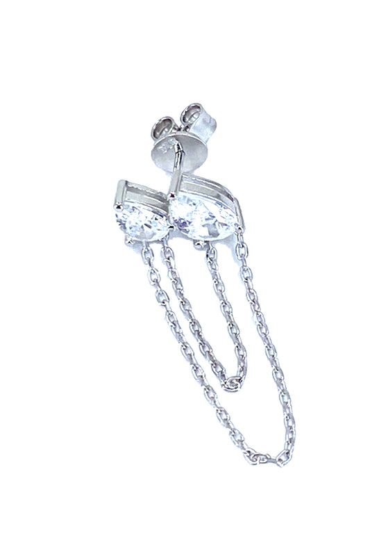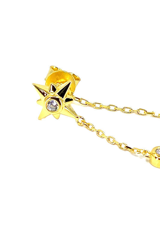 Tek Kuzeyyıldızı Ve Zincir Klips Gümüş Küpe