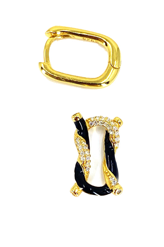 Çeyrek Taşlı Siyah Mineli Gümüş Yamuk Halka Küpe
