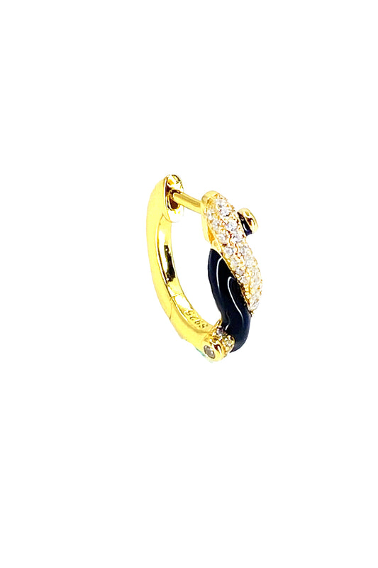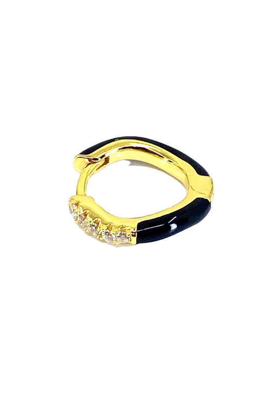 Siyah Mineli Ve Sarılı Taşlı Halka Gümüş Küpe