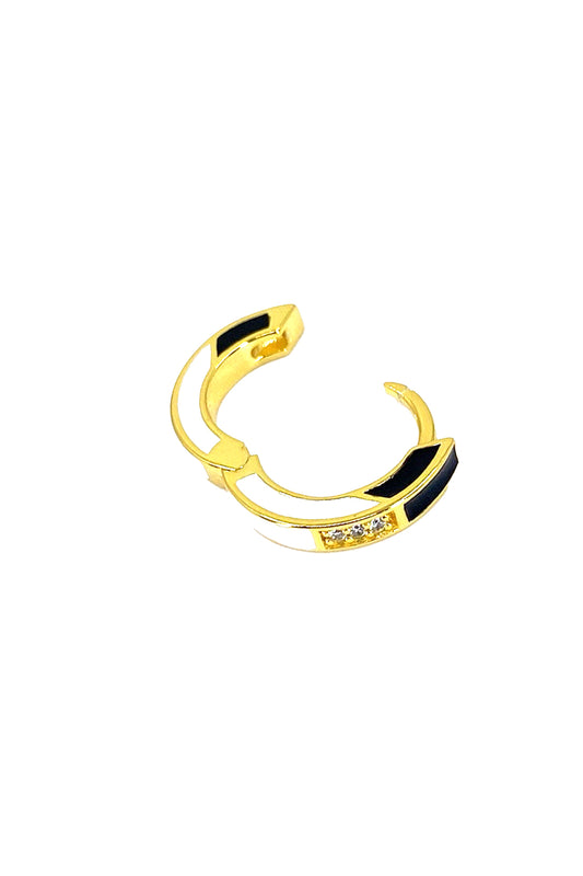 Siyah Ve Beyaz Mineli Köşeli Gümüş Halka Küpe
