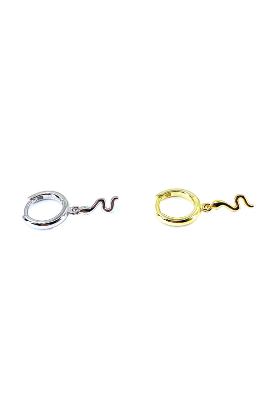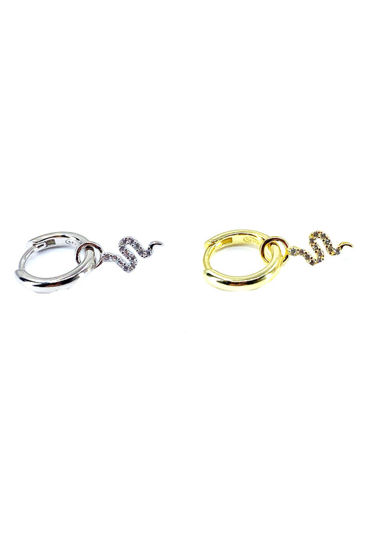 Beyaz Taşlı Mini Yılan Sallantılı Gümüş Küpe