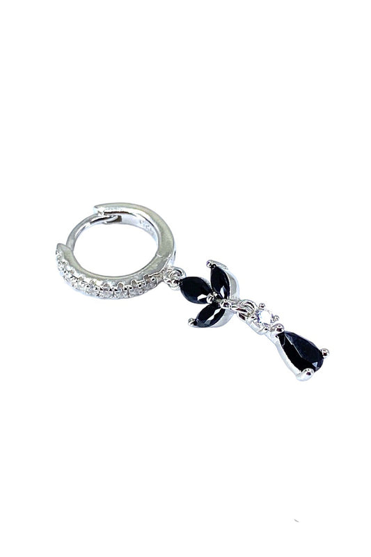 Siyah Damla Ve Lotus Sallantılı Gümüş Küpe