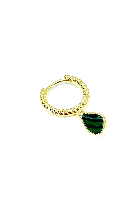 Yeşil Beyaz Baget Detay Burgu Gümüş Halka Küpe