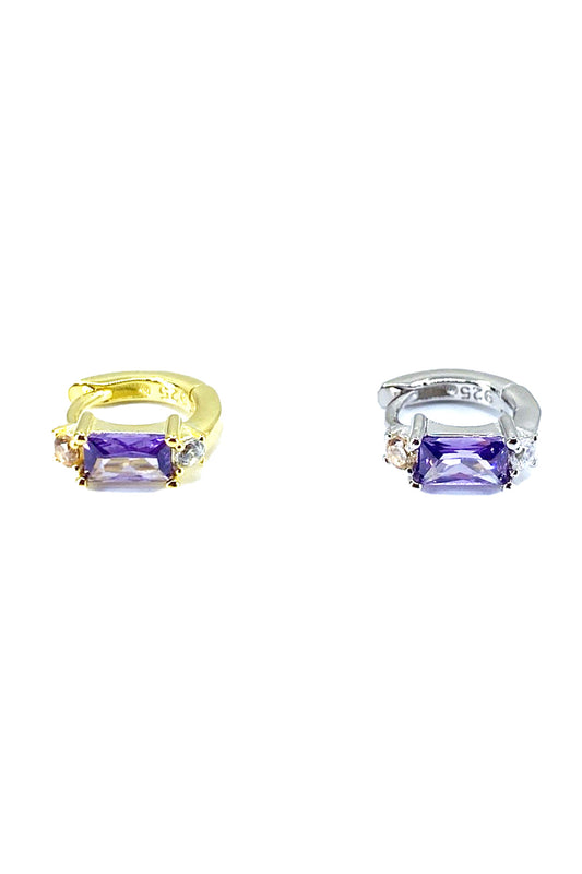 İki Yuvarlak Lila Baget Gümüş Halka Küpe