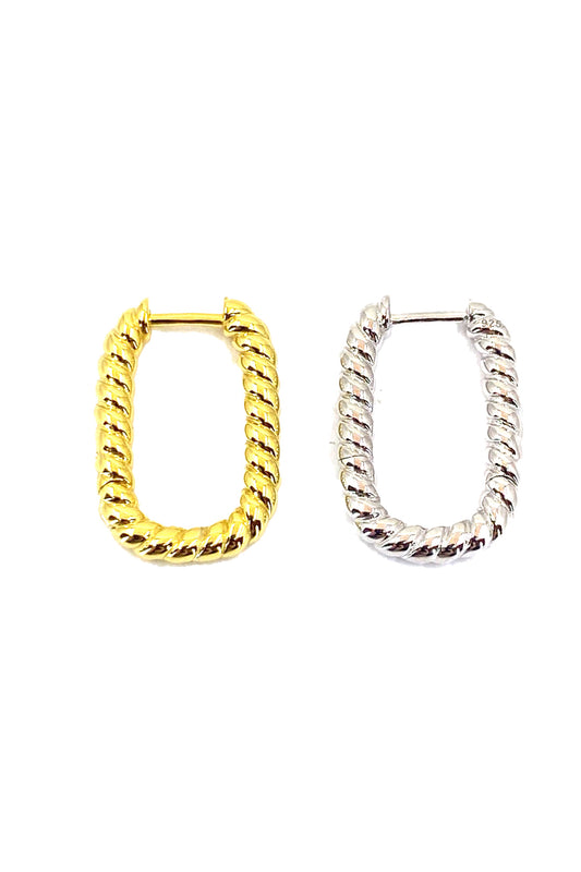 Taşsız Kalın Burgu Oval Geo Gümüş Halka Küpe