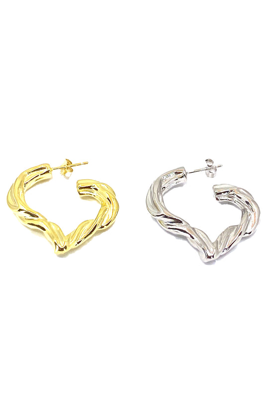 Taşsız Burgu Açık Kalp Gümüş Halka Küpe