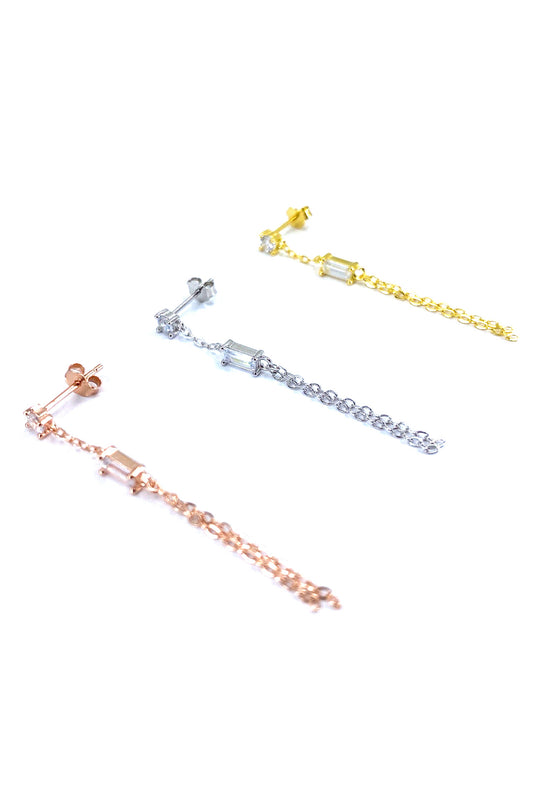 Geo Zincir Sallantılı Baget Gümüş Çivili Küpe