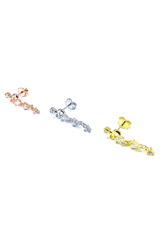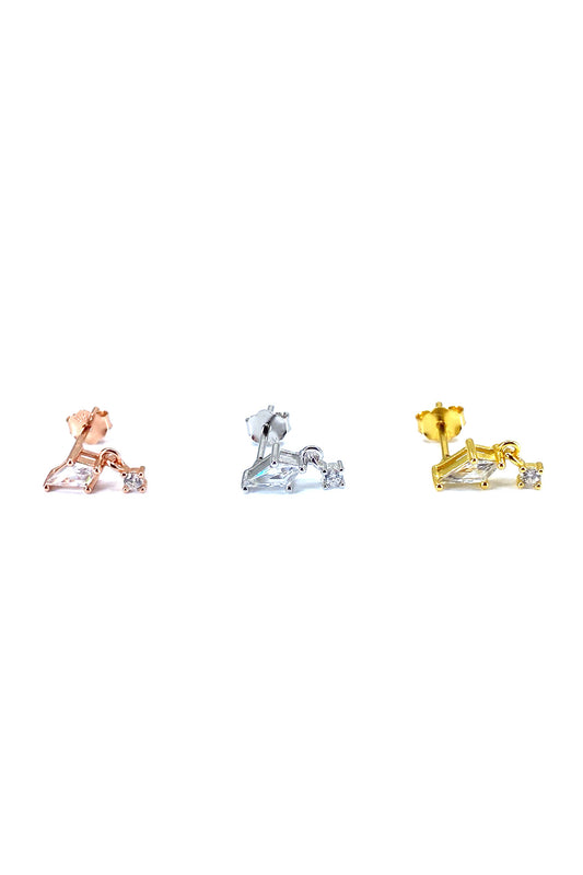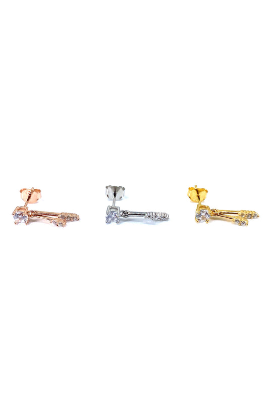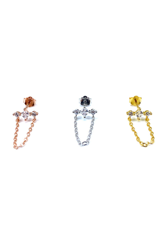 Tektaş Sallantılı Üç Taş Gümüş Çivili Küpe