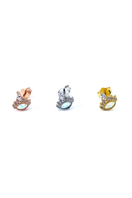 Taş Kirpikli Opal Göz Gümüş Çivili Küpe