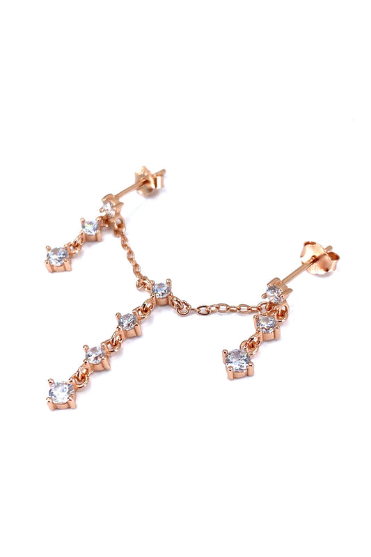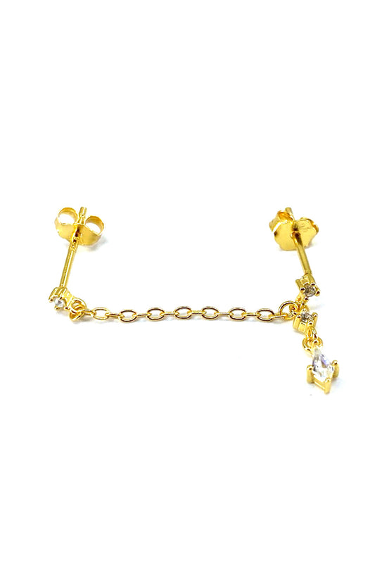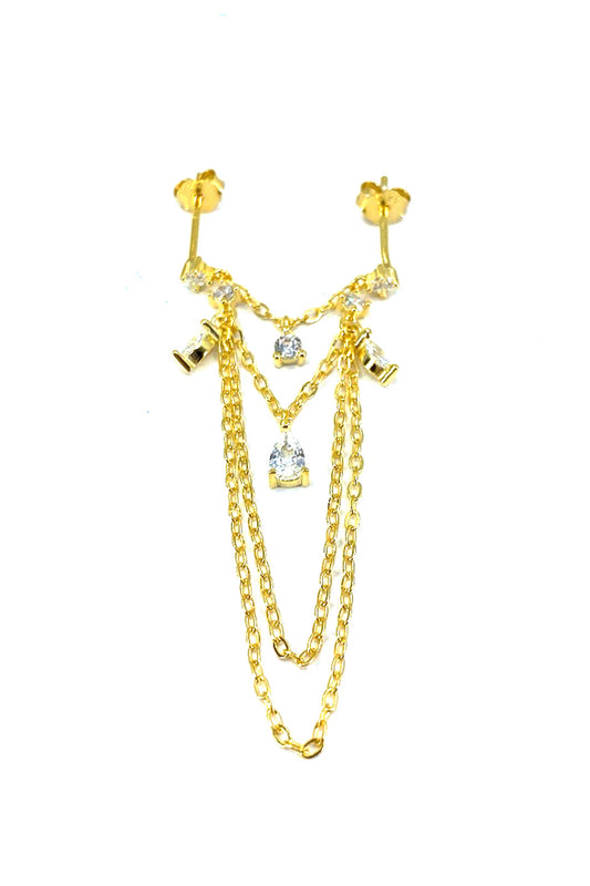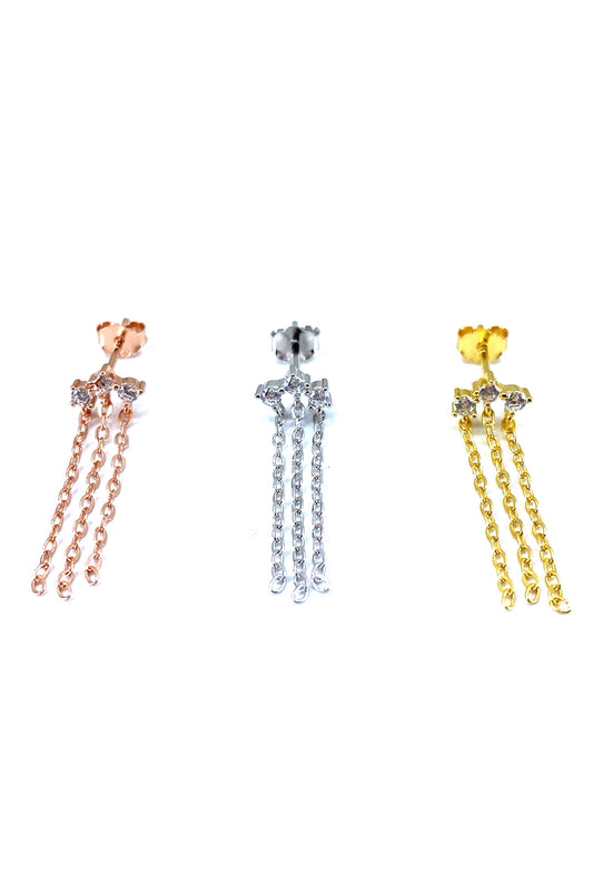 Üç Taş Ve Üç Zincir Sallantılı Gümüş Çivili Küpe