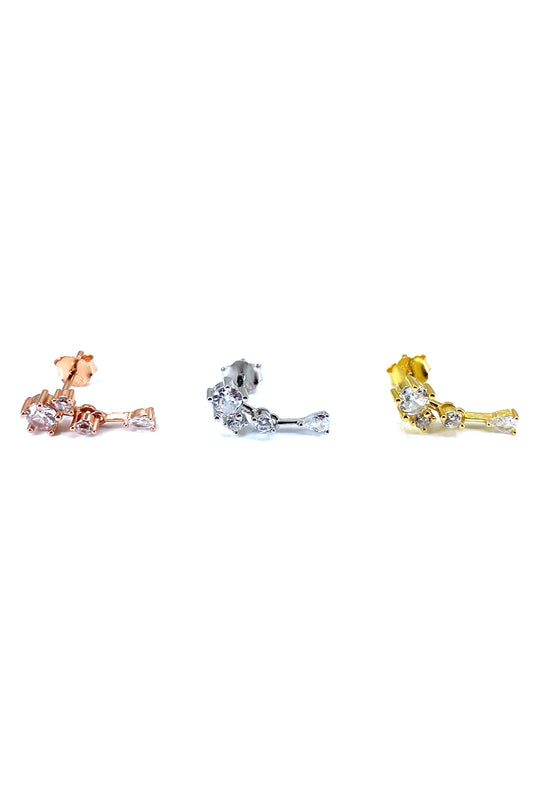 Mix Dört Taş Çubuk Gümüş Çivili Küpe
