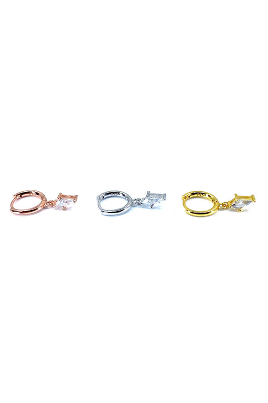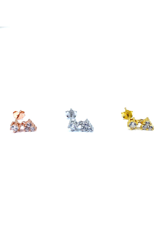 Üç Taş Üçgen Sallantılı Tektaş Gümüş Çivili Küpe