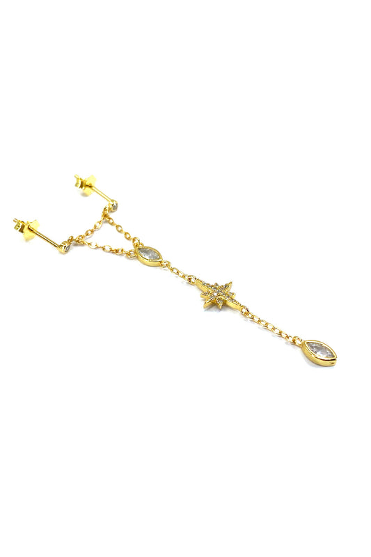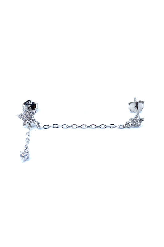 Taş Sallantılı Yıldız Detay İkili Gümüş Çivili Küpe