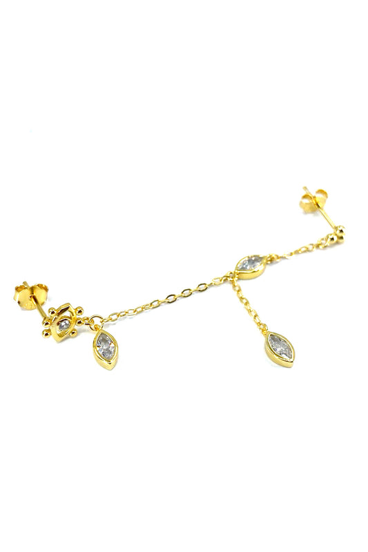 Saçaklı Markiz Ve Tohum İkili Gümüş Çivili Küpe