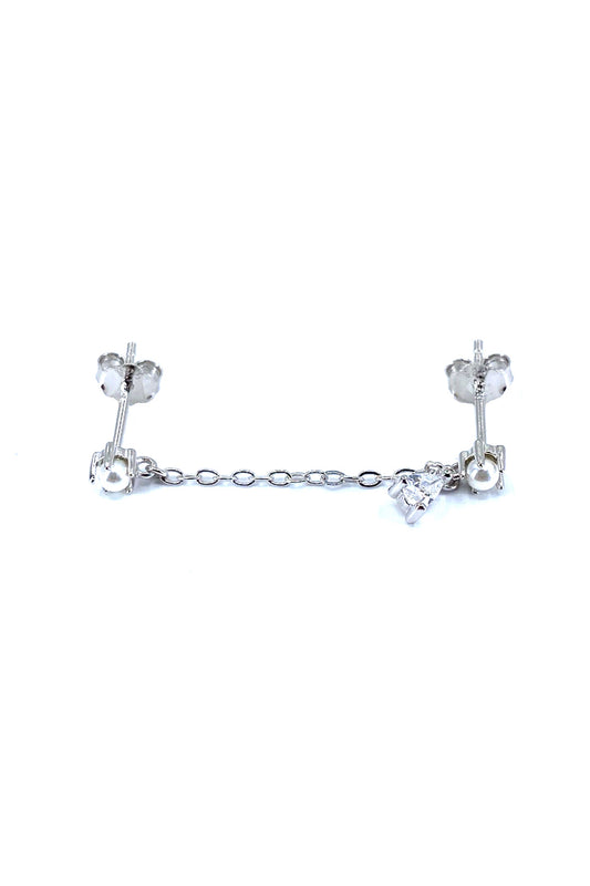 Damla Sallantılı İnci Detay İkili Gümüş Çivili Küpe