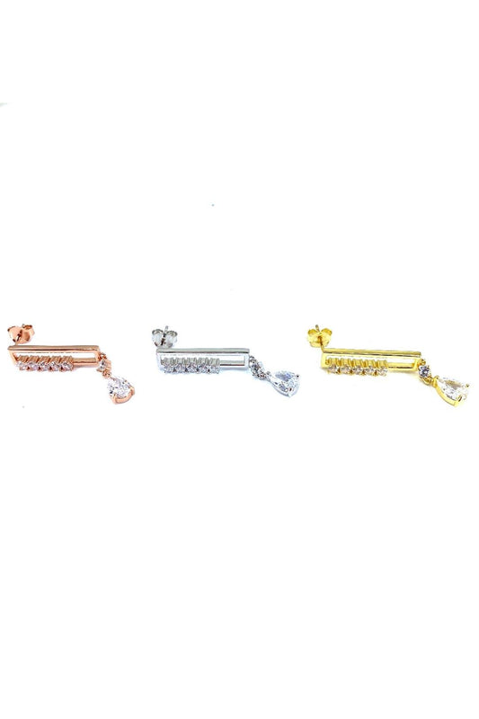 Damla Sallantılı Beş Taş Dikdörtgen Gümüş Küpe