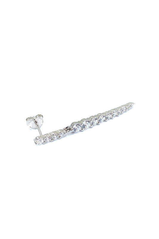 Beyaz Süzme Çubuk Sallantılı Gümüş Çivili Küpe
