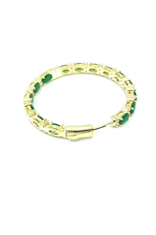 Zümrüt Oval Beyaz Tektaş Suyolu Gümüş Halka Küpe