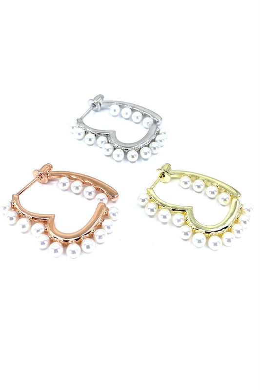 İnci Detay Dikey Yarım Kalp Gümüş Küpe
