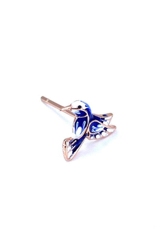 Lacivert Mineli Kuş Gümüş Çivili Küpe